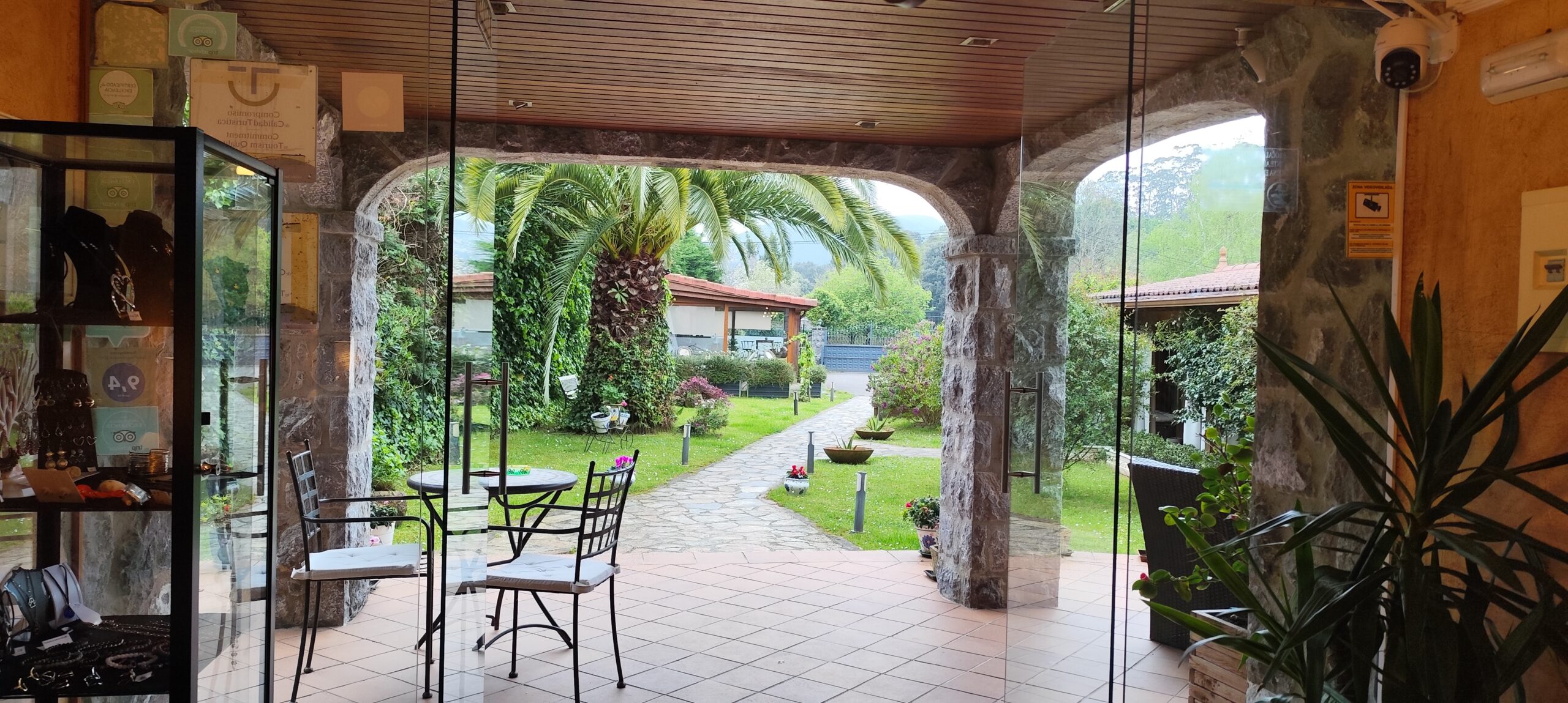 Salón/bar acristalado abierto al jardin con zona chillout (Honesty Room)